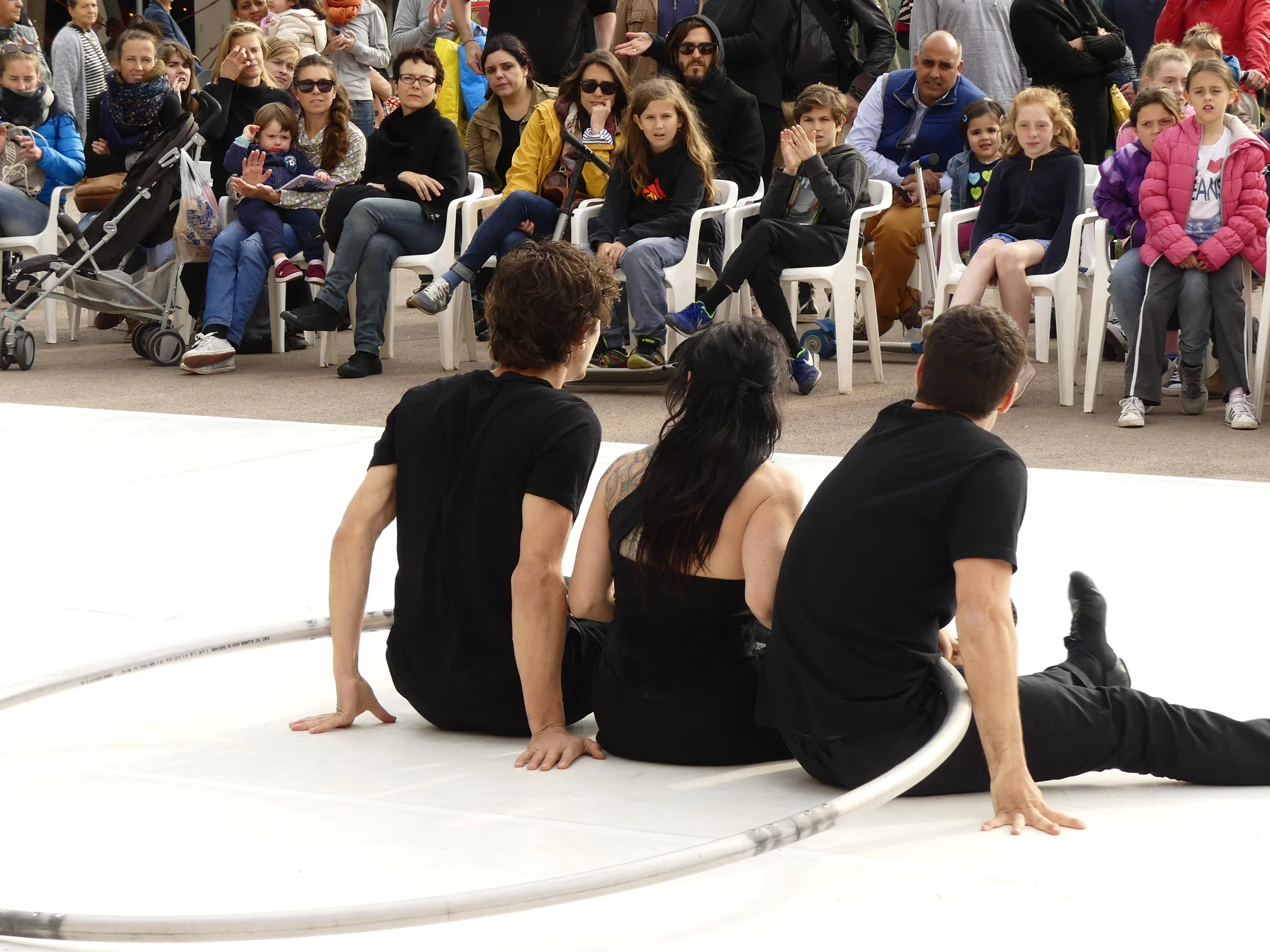 Risc, perill i humor es troben en aquest joc. Aquí tres cossos es llancen a escena sense saber què trobaran.
